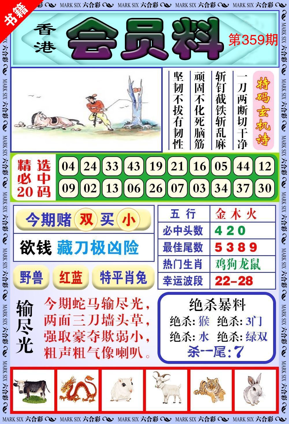 | 359期:⑥肖 | 羊猴牛虎狗兔 | ?00 |